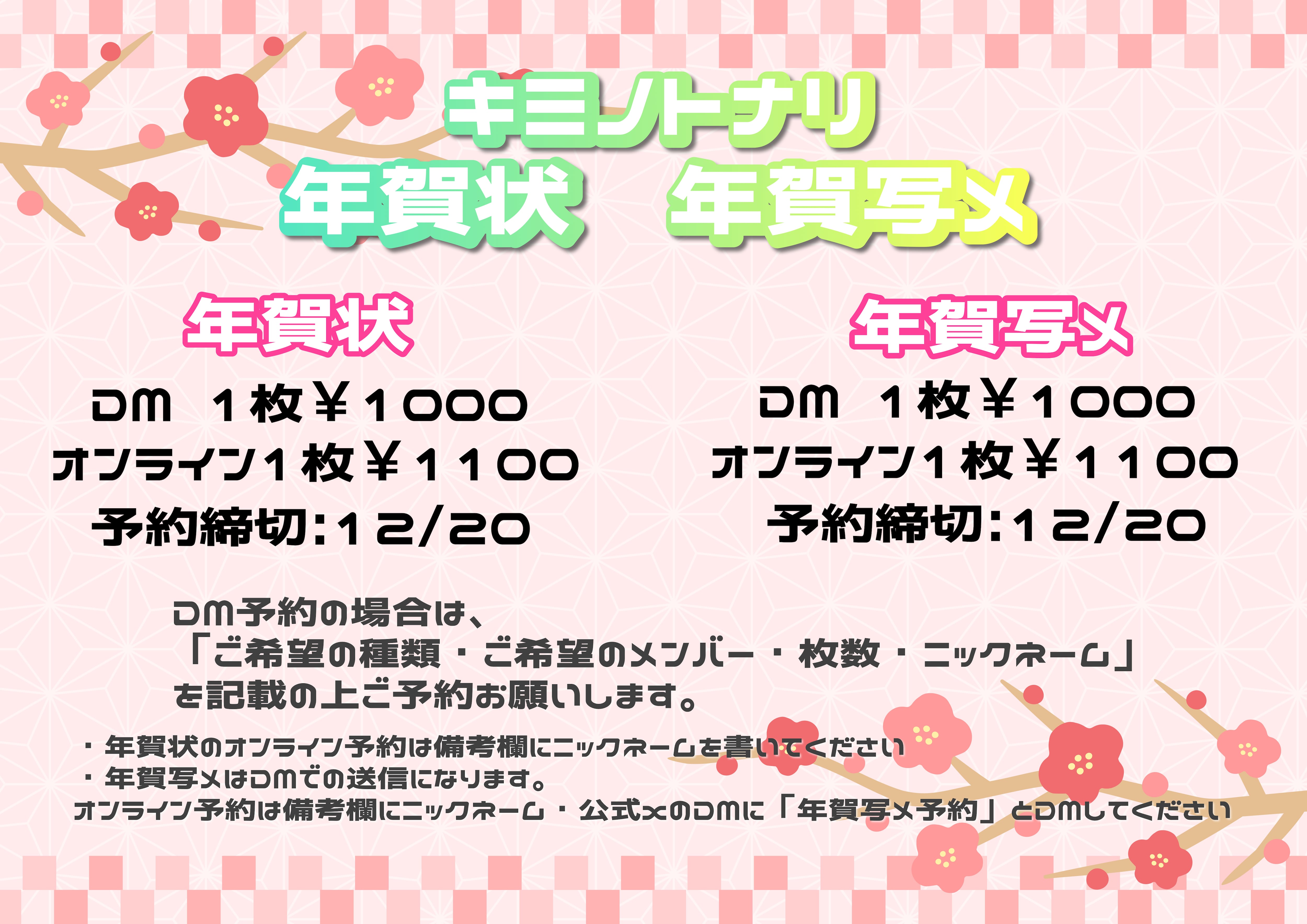 キミノトナリ公式XのDMに「年賀写メ予約」と送信お願いします。